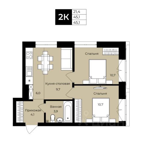 | 🔷 Средняя цена за м2: | 109,1 тыс. руб./м² |