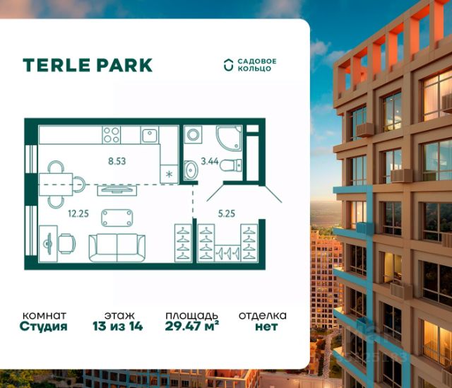 Продается квартира в ЖК Terle Park студия на 9 этаже 14 этажного дома. Общая площадь: 29.66 кв.м. Высота потолков 3.1 м. Срок сдачи 3 квартал 2026 г. Вид на лес. Эскроу-счет. Застройщик ГК "Садовое кольцо". -Расположение Terle Park расположен на улице Авроры, в экологически чистом районе "Зелёная роща", на границе с лесопарком, который огибает река Уфа. Здесь можно наслаждаться чистым воздухом пригородной зоны, оставаясь в городской черте, с быстрым доступом к основным магистралям Уфы и удобной транспортной инфраструктурой. -Инфраструктура Комплекс расположен в шаговой доступности от ключевых образовательных учреждений: детский сад 24, лицей 5, школа 119. Практически через дорогу — станция скорой помощи, кардиологический центр, Республиканская детская больница и Республиканский перинатальный центр, что обеспечивает быстрый доступ к медицинской помощи. -Архитектура Шесть корпусов переменной этажности (от 10 до 29 этажей) гармонично вписываются в природный ландшафт района Зелёной рощи". Каждый корпус имеет индивидуальное оформление, подчеркивающее уникальность и современность комплекса. Дома возводятся по кирпично-монолитной технологии с навесным фасадом, что обеспечивает долговечность и эстетическую привлекательность. -Внутренний двор Внутренняя территория представляет собой уютный парк для жителей, где всё продумано до мелочей. Закрытый двор без машин обеспечивает безопасность и уют. Пространство разделено на различные зоны для отдыха: от прогулочных маршрутов и лаунж-зон, до террас для йоги и медитаций. Для общения и ярких событий будет обустроена событийная площадь. Для любителей спорта на территории предусмотрены воркаут зона, настольный теннис и многофункциональная площадка для игр. -Входные группы Подъезды расположены на уровне земли — удобно для колясок, велосипедов и самокатов. Лобби в светлой палитре с зелёными и оранжевыми акцентами дополняет рабочая зона для встреч и онлайн-конференций. В домах предусмотрены современные бесшумные лифты.