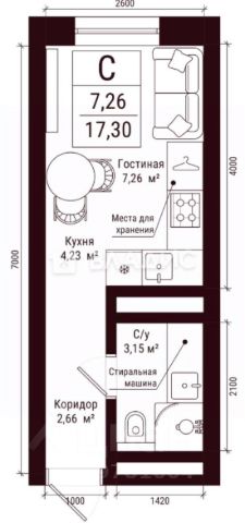 • ✅ Минимальная площадь: 17,3 м²