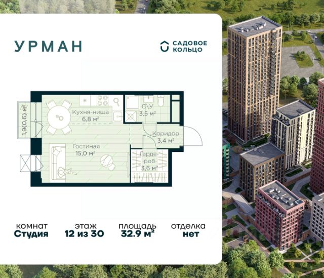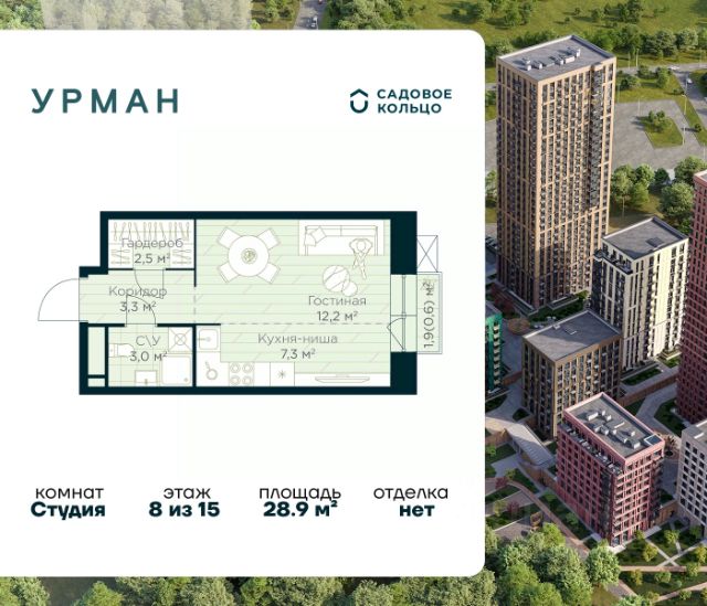 Продается квартира в ЖК Urman City студия на 8 этаже 15 этажного дома. Общая площадь: 28.6 кв.м. Высота потолков 2.95 м. Срок сдачи 1 квартал 2028 г. Эскроу-счет. Застройщик ГК "Садовое кольцо". -Расположение Urman расположен прямо в сердце лесного массива. Прогулка по благоустроенным лесным тропам или 10 мин езды до центра города — выбор за вами. Собственная дорога через лес обеспечивает приватность и тишину, защищая от городского шума. -Инфраструктура Urman предлагает разнообразную собственную инфраструктуру: спортивные зоны, детские площадки, кафе и уютные общественные пространства. Планировки квартир продуманы до мелочей, обеспечивая комфорт и функциональность. -Архитектура Неоклассические пропорции, игра стекол и оттенков кирпича, вдохновленная североевропейскими мотивами, создают уникальный облик комплекса. Разновысотные корпуса открывают впечатляющие виды на лес и реку, делая каждый дом по-настоящему особенным. -Внутренний двор Закрытый трехуровневый двор впечатляет гармонией и уютом. Продуманный ландшафт и связь с окружающим лесом создают идеальное пространство для отдыха, прогулок и семейного времяпрепровождения. -Входные группы Входные группы оформлены элегантно и продуманно. Акцентные элементы, ландшафтные композиции и представительская зона в стиле эко-лофт создают эффект "портала" в приватный мир комплекса.