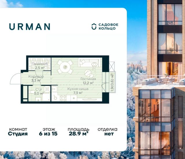 Успейте забронировать по акционной цене! Стоимость квартиры указана со скидкой, ваша выгода составит 475484 рублей. Предложение ограничено. Звоните, чтобы узнать подробнее! Продается квартира в ЖК Urman City студия на 3 этаже 10 этажного дома. Общая площадь: 45.68 кв.м. Высота потолков 3.4 м. Срок сдачи 2 квартал 2026 г. Окна выходят на 2 стороны. Патио. Угловое остекление. Эскроу-счет. Застройщик ГК "Садовое кольцо". -Расположение Urman расположен прямо в сердце лесного массива. Прогулка по благоустроенным лесным тропам или 10 мин езды до центра города — выбор за вами. Собственная дорога через лес обеспечивает приватность и тишину, защищая от городского шума. -Инфраструктура Urman предлагает разнообразную собственную инфраструктуру: спортивные зоны, детские площадки, кафе и уютные общественные пространства. Планировки квартир продуманы до мелочей, обеспечивая комфорт и функциональность. -Архитектура Неоклассические пропорции, игра стекол и оттенков кирпича, вдохновленная североевропейскими мотивами, создают уникальный облик комплекса. Разновысотные корпуса открывают впечатляющие виды на лес и реку, делая каждый дом по-настоящему особенным. -Внутренний двор Закрытый трехуровневый двор впечатляет гармонией и уютом. Продуманный ландшафт и связь с окружающим лесом создают идеальное пространство для отдыха, прогулок и семейного времяпрепровождения. -Входные группы Входные группы оформлены элегантно и продуманно. Акцентные элементы, ландшафтные композиции и представительская зона в стиле эко-лофт создают эффект "портала" в приватный мир комплекса. Продается квартира-студия в Уфе.