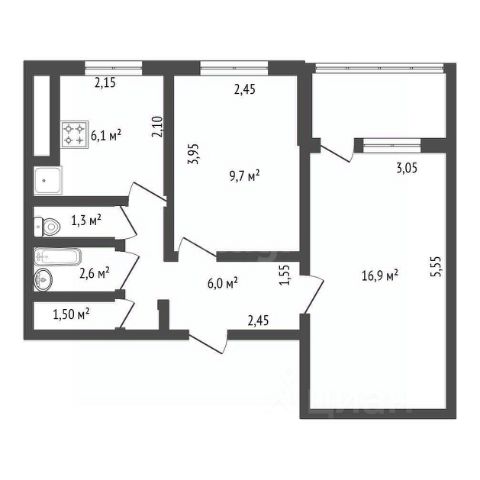 • ✅ Объект наибольшей площади: 63,2 м²