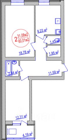 Продаётся 2-комнатная квартира в строящемся доме (Литер 2), срок сдачи: I-кв. 2026, общей площадью 60.01 кв.м., на 8 этаже. Жилой комплекс "Семейный" находится в Ленинском районе города Уфа. По данным официального сайта в состав жилого комплекса входят два корпуса, на первых этажах которых располагаются офисные помещения. На благоустроенной территории комплекса находятся детские и спортивные площадки, а также площадки для отдыха. Во втором корпусе ЖК "Семейный" расположена подземная автостоянка. Для удобства жителей жилой комлекс оснащен пандусами, грузопассажирскими лифтами, контейнерами для сбора мусора.