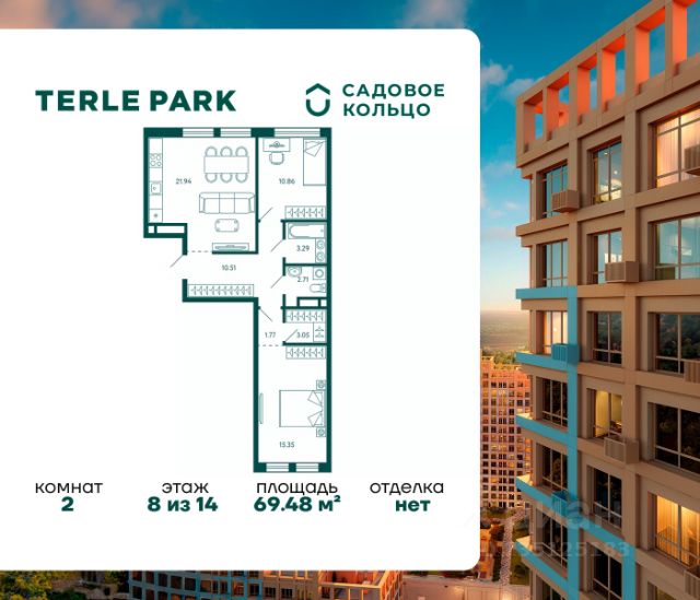 Продается квартира в ЖК Terle Park с 2 спальнями на 2 этаже 14 этажного дома. Общая площадь: 71.49 кв.м. Высота потолков 2.95 м. Срок сдачи 4 квартал 2025 г. Вид на лес. Эскроу-счет. Застройщик ГК "Садовое кольцо". -Расположение Terle Park расположен на улице Авроры, в экологически чистом районе "Зелёная роща", на границе с лесопарком, который огибает река Уфа. Здесь можно наслаждаться чистым воздухом пригородной зоны, оставаясь в городской черте, с быстрым доступом к основным магистралям Уфы и удобной транспортной инфраструктурой. -Инфраструктура Комплекс расположен в шаговой доступности от ключевых образовательных учреждений: детский сад 24, лицей 5, школа 119. Практически через дорогу — станция скорой помощи, кардиологический центр, Республиканская детская больница и Республиканский перинатальный центр, что обеспечивает быстрый доступ к медицинской помощи. -Архитектура Шесть корпусов переменной этажности (от 10 до 29 этажей) гармонично вписываются в природный ландшафт района Зелёной рощи". Каждый корпус имеет индивидуальное оформление, подчеркивающее уникальность и современность комплекса. Дома возводятся по кирпично-монолитной технологии с навесным фасадом, что обеспечивает долговечность и эстетическую привлекательность. -Внутренний двор Внутренняя территория представляет собой уютный парк для жителей, где всё продумано до мелочей. Закрытый двор без машин обеспечивает безопасность и уют. Пространство разделено на различные зоны для отдыха: от прогулочных маршрутов и лаунж-зон, до террас для йоги и медитаций. Для общения и ярких событий будет обустроена событийная площадь. Для любителей спорта на территории предусмотрены воркаут зона, настольный теннис и многофункциональная площадка для игр. -Входные группы Подъезды расположены на уровне земли — удобно для колясок, велосипедов и самокатов. Лобби в светлой палитре с зелёными и оранжевыми акцентами дополняет рабочая зона для встреч и онлайн-конференций. В домах предусмотрены современные бесшумные лифты.