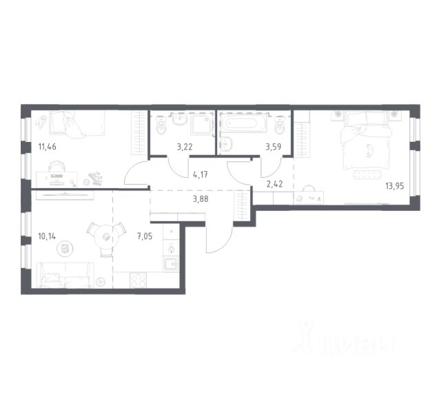 Строим кварталы для жизни с заботой о будущем. Предлагается 2-комнатная квартира комфорт-класса 59,93 кв.м в корпусе 1.1-1.2 на 11 этаже, в ЖК "Урбан Мартен" Квартира с чистовой отделкой. Доступность дополнительных опций уточняйте у застройщика. Приобрести квартиру возможно по специальным акциям от застройщика, с текущими условиями акций можно ознакомиться в блоке "Акций". Цена динамическая и может отличаться, уточняйте актуальность у застройщика. В жилом комплексе "Урбан Мартен" у вас будет собственная Уфа: домашняя, неторопливая, теплая. Здесь дети будут играть во дворе без машин в догонялки, собака сможет бегать за палкой по пляжу, а с соседями получится встречаться не только у лифта, но и на утренних занятиях йогой на зеленой лужайке рядом с домом. Жилой комплекс "Урбан Мартен" находится в Демском районе — самом тихом и зеленом в Уфе. Здесь можно открывать окна нараспашку, чтобы квартира наполнялась свежим воздухом, и наблюдать с балкона, как покачиваются макушки деревьев.
