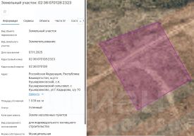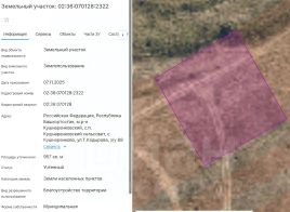 Земельный участок с кадастровым номером 02:36:070128:2313 площадь 900 по адресу Российская Федерация, Республика Башкортостан, м.р-н Кушнаренковский, с.п. Кушнаренковский сельсовет, с Кушнаренково, ул Г.Кадырова, з/у 78