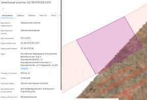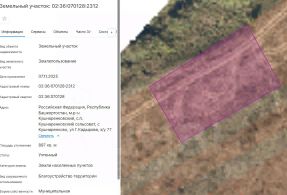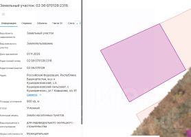 Земельный участок с кадастровым номером 02:36:070128:2311 площадь 905 по адресу Российская Федерация, Республика Башкортостан, муниципальный район Кушнаренковский, сельское поселение Кушнаренковский сельсовет, село Кушнаренково,...