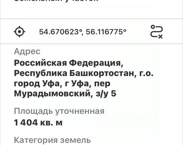 02:55:040565:1298 ДОРОГА ОТСЫПАНА ЩЕБНЕМ ! Продаётся ровный участок с правильной формой. Калининский район, город Уфа Динамично развивающаяся местность, в перспективе развитие нового жилого микрорайона, уже подписан указ главы города о развитие территории. Транспортная доступность - 5 маршрутных автобусов, школьные автобусы в две стороны, газ по границе участка. Электричество 380. Активные соседи. Продажа участка в связи с расширением жилой площади в городе. В собственности без задолженностей и обременений. Возможно продажа в ипотеку под строительство с предоставлением аккредитованных подрядчиков. Скидка, при наличном расчёте За подробностями обращайтесь в сообщениях или по звонку.