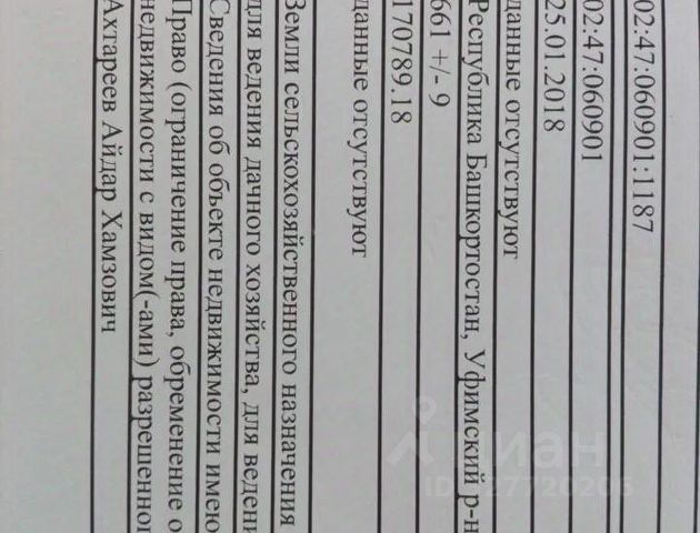 Продается земельный участок 759 кв.м. по адресу: р-н Уфимский, с/с Юматовский, ДНТ "Локомотив", уч.18. Кад.номер: 02,47,180208,291. Коммуникации свет, газ рядом с земельным участком. Улица жилая, соседи строятся, дорога по улице отсыпана щебнем, в дальнейшем дорога будет асфальтирована, зимой чистится. Очень живописное место для загородного дома, дачи с хорошими соседями. В поселке развитая инфраструктура, в шаговой доступности магазины, недалеко средняя школа, детский сад, до ж/д станции "Юматово" и автобусной остановки 5 минут пешком. Рядом расположены детские оздоровительные лагеря: Звездочка, Березка, Локомотив. Один взрослый собственник! Звоните! Код пользователя: 8767 Номер в базе: 8271197