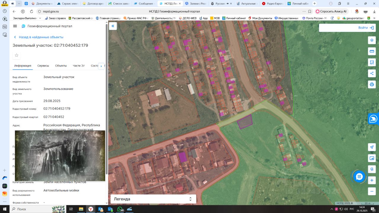 Земельный участок (далее участок) местоположение: установлено относительно ориентира, расположенного в границах участка, почтовый адрес ориентира: Российская Федерация, Республика Башкортостан, Давлекановский район, г. Давлеканово; площадь: 357 кв. м; кадастровый номер 02:71:040452:179; сведения о правах: государственная собственность на земельный участок не разграничена; вид разрешенного использования: автомобильные мойки; категория земель: земли населенных пунктов