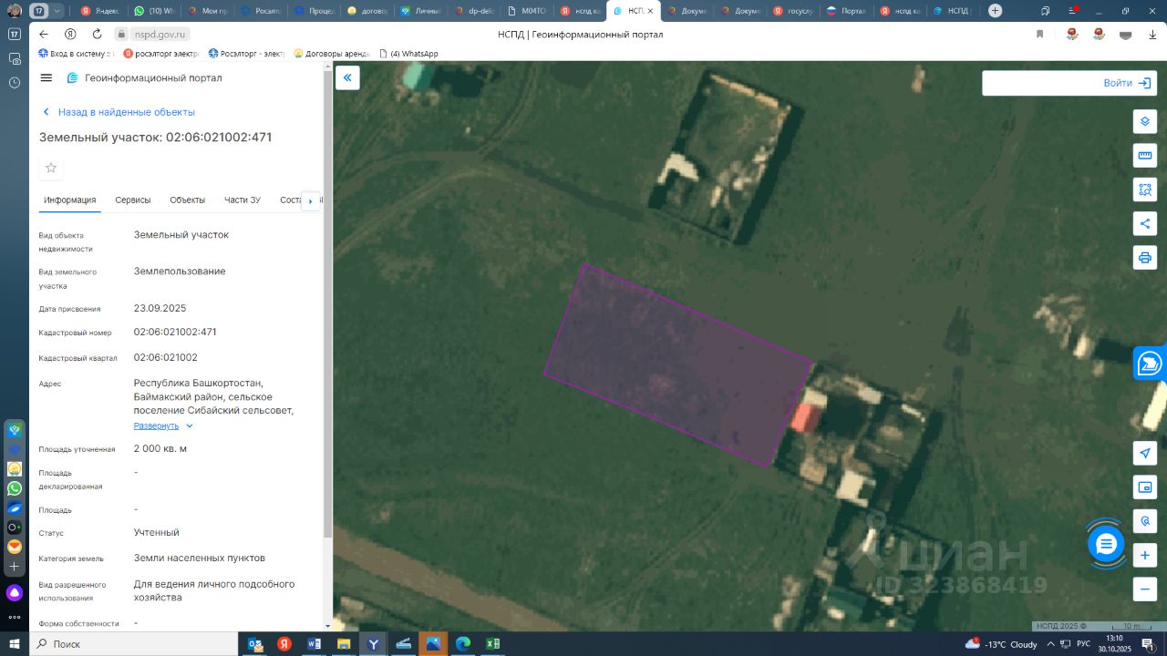 Земельный участок категории земли населенных пунктов, с кадастровым номером 02:06:021002:471, общей площадью 2000 кв.м., расположенного по адресу: Республика Башкортостан, Баймакский район, сельское поселение Сибайский сельсовет, деревня Давлетово, улица Ибрагима Бикбаева, дом 33, с видом разрешенного использования для ведения личного подсобного хозяйства