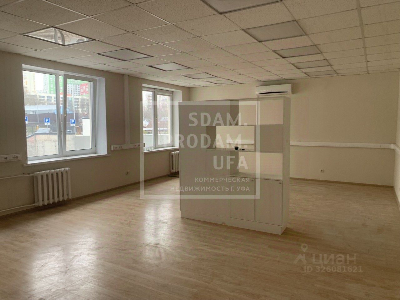 Прямоугольное помещение. Три окна. Железная дверь. Косметический ремонт. Кондиционер, Разводка сети в кабинете.