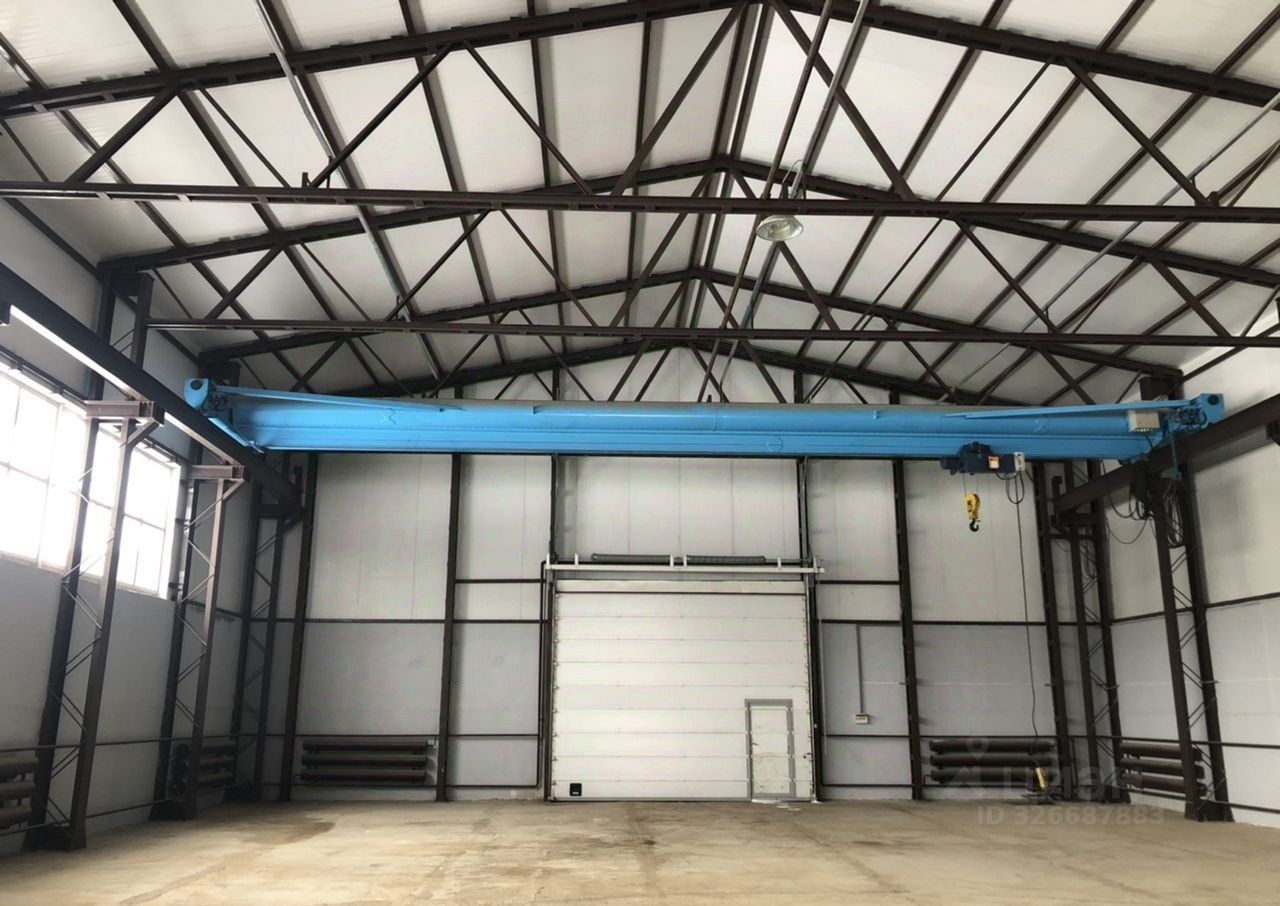 ХАРАКТЕРИСТИКА: Складское/производственное помещение, площадью 1500 кв.м., высота потолков до несущих конструкций 9,6 метров. Двое ворот высотой ворот 4,2 метра. Имеется кран-балка на всю площадь помещения грузоподъемностью 5 тонн. Покрытие полов бетон.
