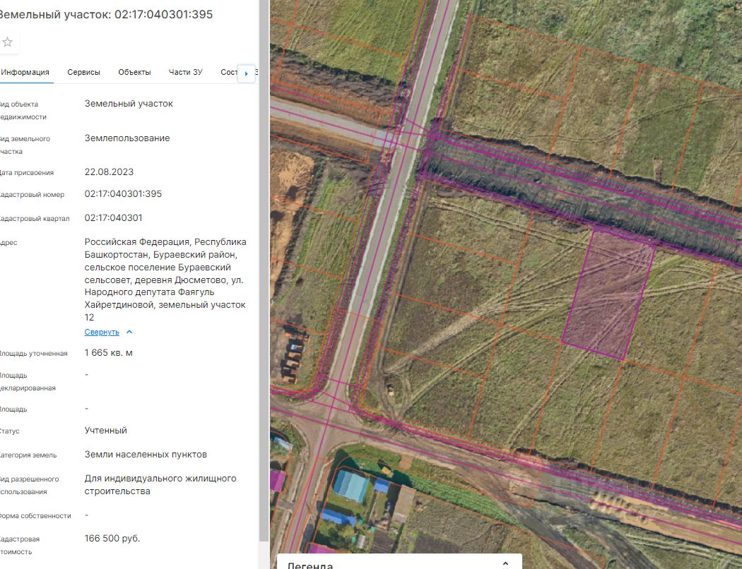 Земельный участок (далее участок), категории земель населенных пунктов, с кадастровым номером 02:17:040301:395 площадью 1665 кв. м, расположенного по адресу: Российская Федерация, Республика Башкортостан, м.р-н Бураевский, с.п. Бураевский сельсовет, д Дюсметово, ул Народного депутата Фаягуль Хайретдиновой, з/у 12, с видом разрешенного использования "Для индивидуального жилищного строительства", с правом строительства зданий, сооружений.
