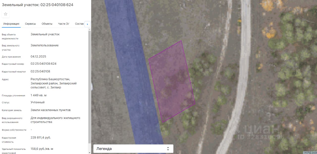 Земельный участок категории земли населенных пунктов, с кадастровым номером 02:25:040108:624, общей площадью 1449 кв.м., расположенного по адресу: Республика Башкортостан, Зилаирский район, Зилаирский сельсовет, с. Зилаир, с видом разрешенного использования "для индивидуального жилищного строительства".