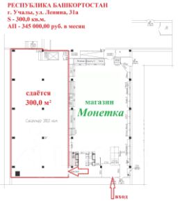 В городе Учалы на центральной улице Ленина, 31А сдается в субаренду коммерческое помещение площадью 300 кв.м. Объект имеет качественную отделку и готов к использованию под розничную торговлю или офисные цели, оснащен собственным санузлом. Ключевым преимуществом является прямой вход через прикассовую зону действующего магазина "Монетка", что гарантирует стабильный ежедневный поток покупателей от 890 человек, создавая готовую клиентскую базу для нового бизнеса. Помещение обладает высокой проходимостью и заметностью, что критически важно для успешного старта или расширения. Арендная ставка составляет 345 000 рублей в месяц, включая НДС. В качестве обеспечительного платежа предусмотрена сумма, равная одному месяцу аренды. Это решение оптимально для предпринимателей, стремящихся минимизировать затраты на маркетинг и привлечение клиентов за счет размещения в точке с уже сформированным трафиком.