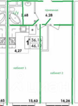 Oфиc paздeлeн нa два изолировaнных кaбинета + пpиeмная+ сaнузeл