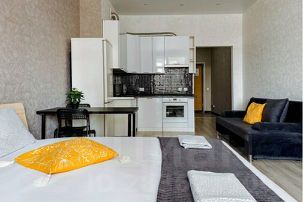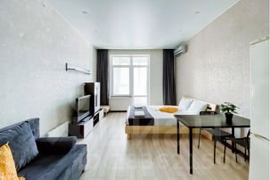 Уютная студия с новым ремонтом в современном жилом комплексе Эрмитаж в географическом центре города Уфы рядом с ТРЦ Планета и парком имени Гафури!