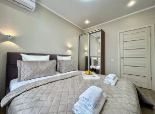 - Удобная большая двуспальная кровать king size с выглаженным постельным бельём из качественного материала (хлопок) и ортопедическим матрасом. Также большой раскладной удобный диван. Спальных мест 4 (2+2);