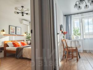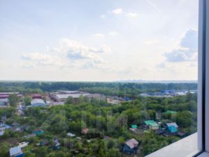 Комфортная 1-комнатная квартира в ЖК Акварель на высоком этаже с видом на город и облака.
