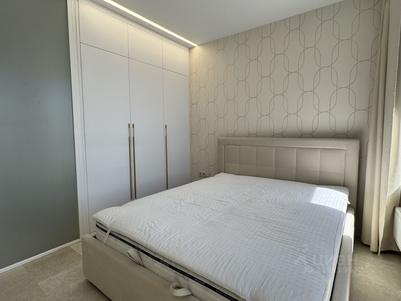 В спальне - просторная кровать, шкаф для хранения вещей.