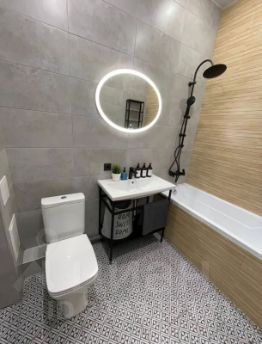 - ванна, душевой набор (гель для душа, шампунь, жидкое мыло, махровые полотенца);