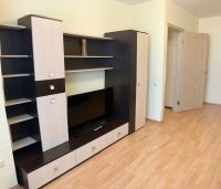 Современная мебель и бытовая техника: кухонный гарнитур, большой двухкамерный холодильник, ЖК телевизор, стенка горка, обеденный стол и стулья, диван, шкаф купе, стиральная машина автомат. Красивый и благоустроенный район.