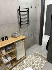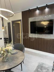 В квартире предусмотрены умные выключатели и шторы, есть Алиса - колонка и телевизор, посудомойка, стиральная и сушильная машины, проведен интернет, установлены умные сплит системы. Для хранения вещей сделана отдельная гардеробная комната.