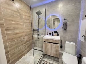 В квартире есть всё необходимое для комфортного проживания. Полностью меблированная кухня оборудована современными приборами, включая посудомоечную машину и холодильник. В гостиной и спальне также имеется мебель, что позволяет сразу заехать и жить без дополнительных хлопот. В ванной комнате установлена душевая кабина. Кондиционер и стиральная машина добавляют удобства в повседневную жизнь.