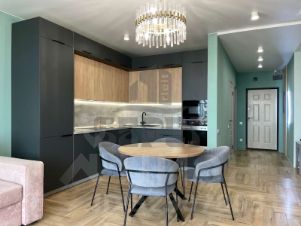 Квартира оборудована встроенной мебелью и техникой: