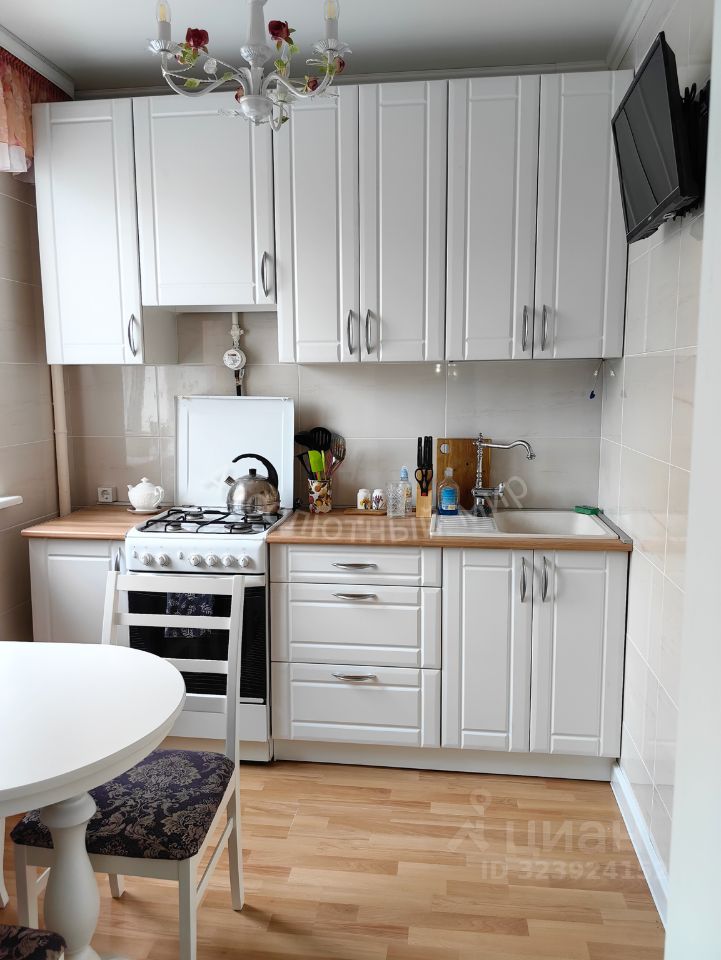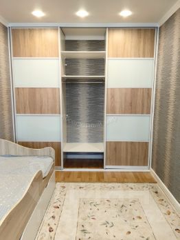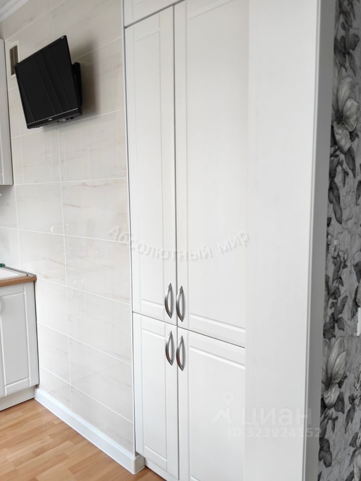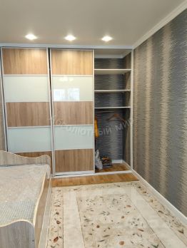 Есть встроенный кухонный гарнитур, встроенный холодильник, телевизор на кухне, обеденная группа, небольшая гардеробная, встроенный шкаф в прихожей и встроенный шкаф-купе в спальне, компьютерный стол.