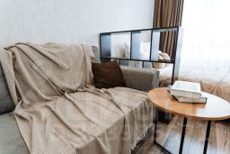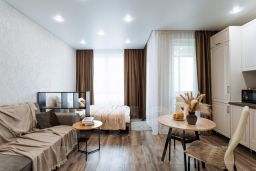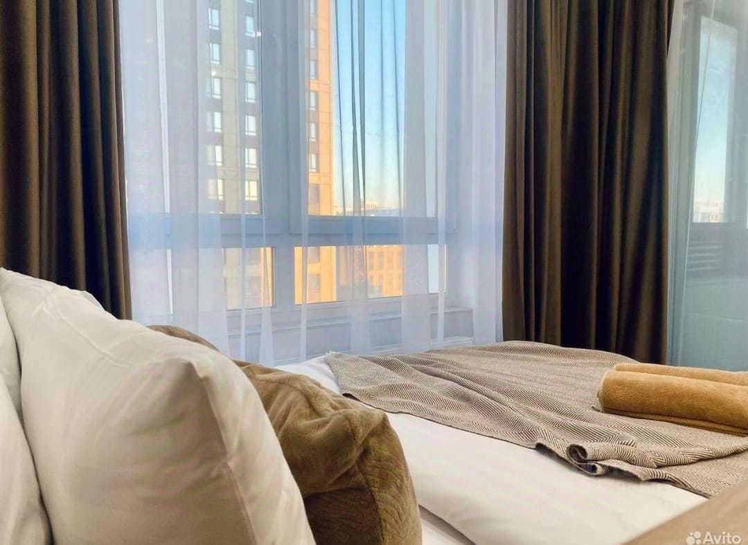 Шикарная студия в ЖК Tau House на 15 этаже . В апартаментах возможно размещение 4 человек. Спальные места: двуспальная кровать с чистым белым постельным бельём и комфортный двуспальный диван. Кухня оборудована необходимой посудой и техникой: холодильник, плита, микроволновка, чайник. К услугам гостей также wi-fi, телевизор, стиральная машина, постельное белье, полотенца, средства личной гигиены, тапочки.