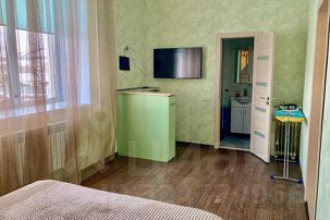 Две спальни с большими кроватями, для большего удобства, оснащены отдельными санузлами, в одном из которых расположена стиральная машинка, фен, сушилка и корзина для белья. В каждой комнате телевизор и наличие Wi-Fi сети. В коридоре и комнате два больших шкафа. Теплый пол. В распоряжении закрытая парковочная зона не малого размера и место для приготовления шашлыка. Различные магазины, многочисленные кафе, аптеки, столовые и т.д. находятся буквально под рукой.
