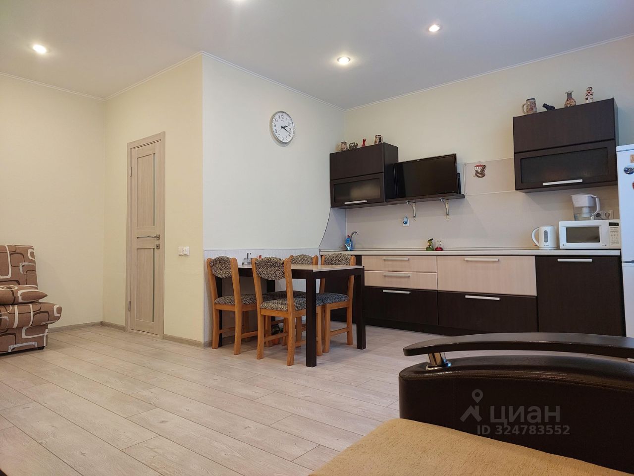Квартира; кухня-гостиная и изолированная спальня, площадью 50кв. м., расположена на первом этаже трёхэтажного дома. Свежий ремонт, тёплый пол. В квартире есть всё необходимое для комфортного проживания.