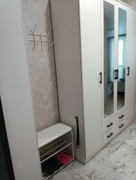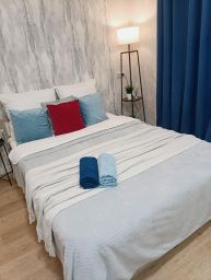 Квартира оборудована всем необходимым для комфортного проживания: двуспальная кровать, телевизор, посуда для приготовления и приема пищи, гладильные принадлежности, фен, утюг.