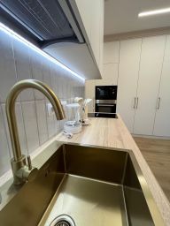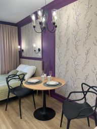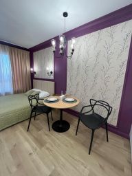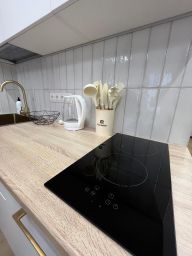 В апартаментах имеется все необходимое для комфортного проживания : двуспальная кровать с чистым белым постельным бельем, укомплектованная кухня с обеденной зоной и посудой, вся необходимая техника, кондиционер, бойлер; в ванной комнате свежие полотенца, средства личной гигиены, тапочки