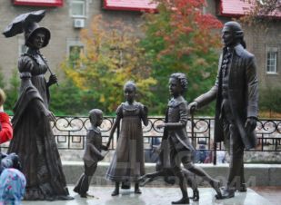 В 30 метрах от дома Спасский храм с белыми колоннами . в 50 метрах -Училище искусств