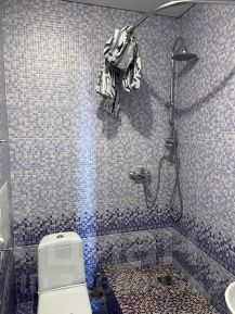 В квартире есть всё необходимое для комфортного проживания. Современная кухня оснащена мебелью и бытовой техникой, включая холодильник и кондиционер. В комнате также есть мебель, обеспечивающая уют и удобство. Санузел совмещённый, оборудован душевой кабиной и стиральной машиной.