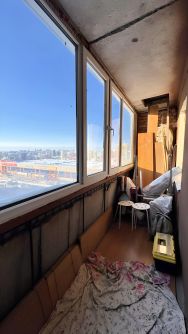 Просторная комната с выходом на балкон из спальной-гостиной, балкон соединенный с кухней, откуда открывается приятный вид на город.