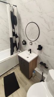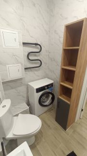- Вся техника: телевизор, робот-пылесос, чайник, вытяжка, встроенная техника на кухне, утюг, сушилка, гладильная доска, стиральная машина и даже мелочи для комфорта.