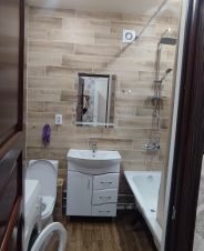 В квартире сделан косметический ремонт, в комнатах и на кухне есть необходимая мебель. Кухня просторная, её площадь 18 кв. м., что позволяет удобно разместиться для готовки и приёма пищи. Для вашего комфорта установлены холодильник, телевизор и стиральная машина. Санузел совмещённый, с ванной, где можно расслабиться после трудового дня. Есть лоджия, где можно обустроить зону отдыха.