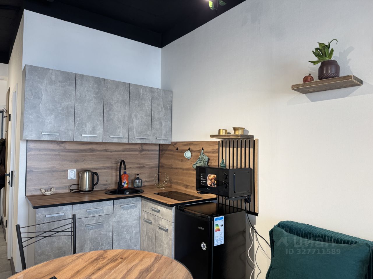 Кухонная зона: Холодильник, микроволновая печь, вся необходимая посуда и принадлежности.