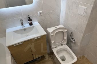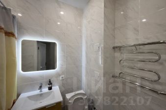 - чистая ванная комната с полотенцами, гелем для душа, шампунем и стиральной машиной,