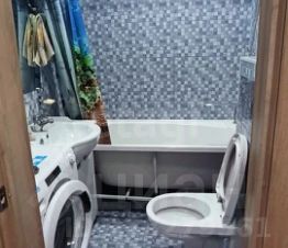 Санузел совмещенный: ванна, стиральная машина, зеркало, полотенцесушитель.