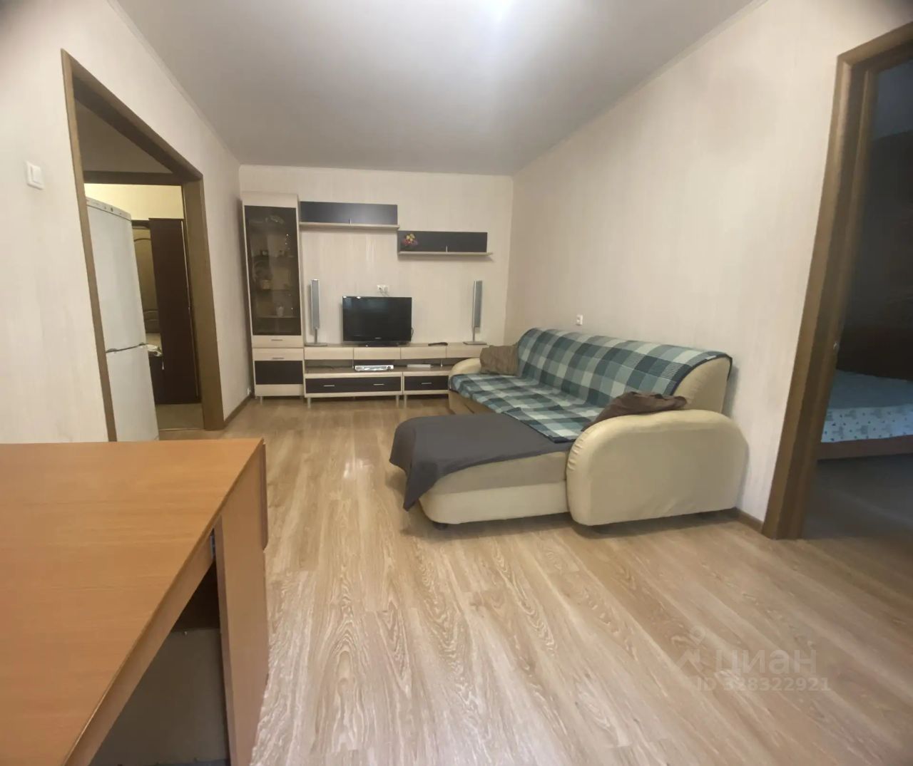 Есть мебель и техника: стиральная машина автомат, газовая плита с электрическим духовым шкафом, телевизор ЖК 32 дюйма. встроенный шкаф-купе,кухонный гарнитур, микроволновая печь, диван, холодильник, столы, полы ламинат, в ванной плитка, балкон утеплен, застеклен и обшит вагонкой. Видеодомофон.