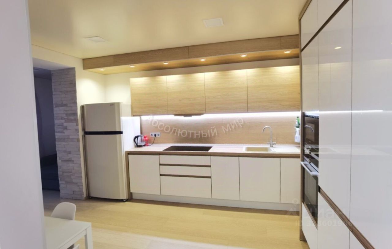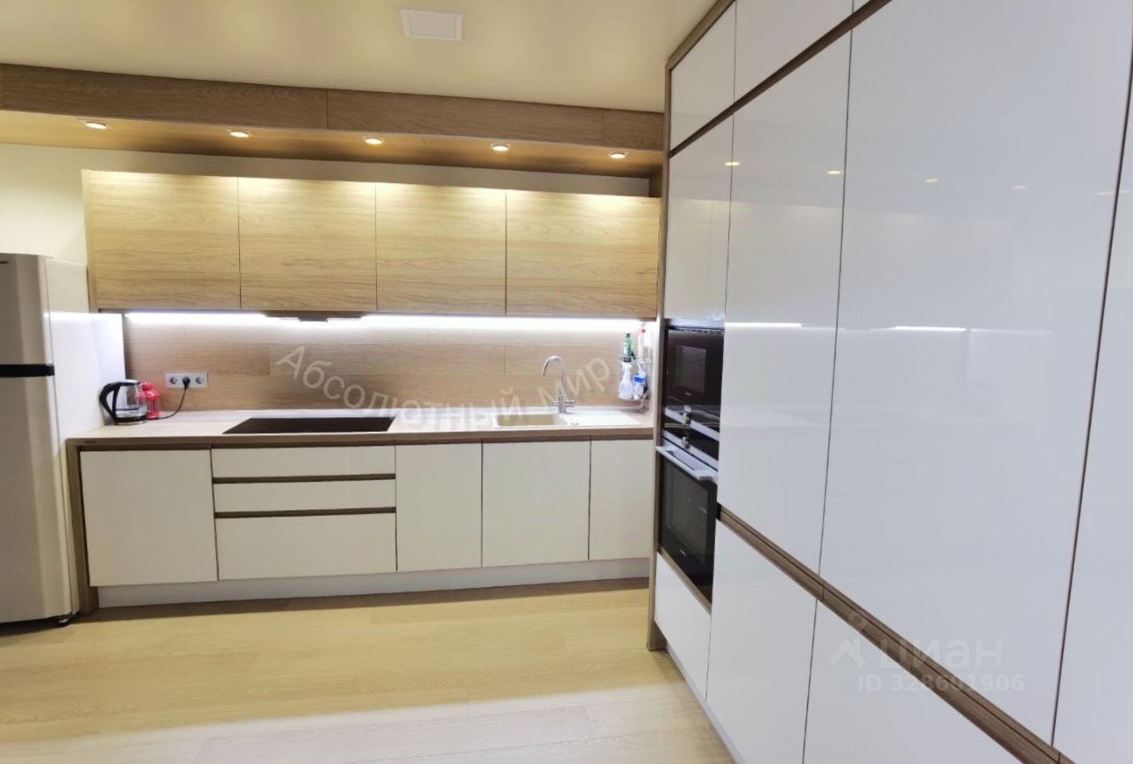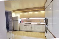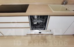 На кухне встроенный гарнитур со встроенной техникой (духовой шкаф, СВЧ-печь, стеклокерамическая варочная поверхность, посудомоечная машинка премиального уровня - Siemens).