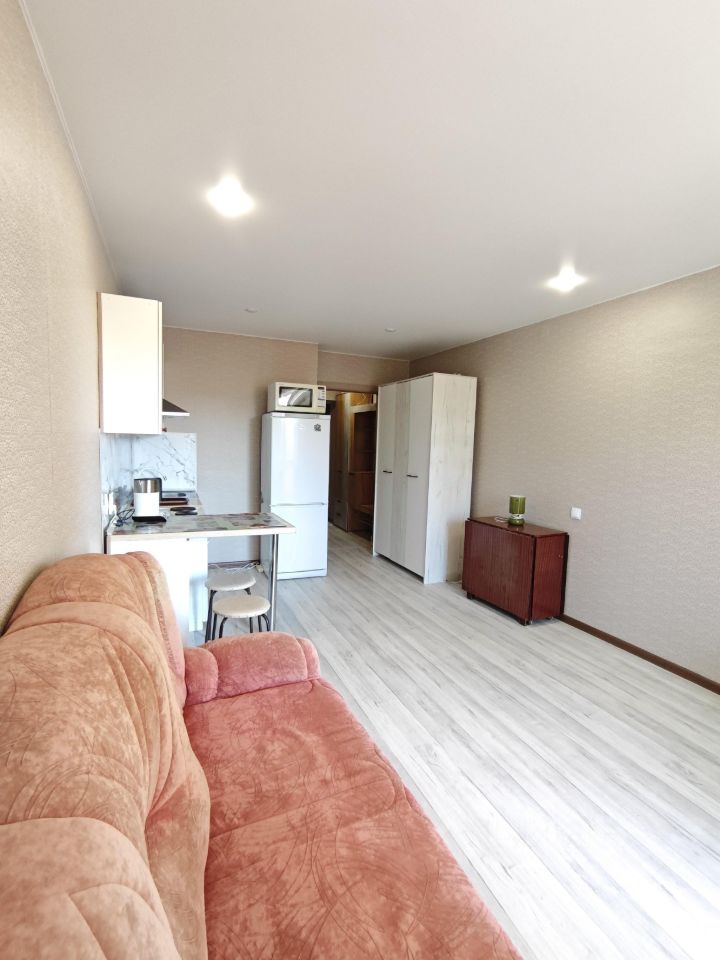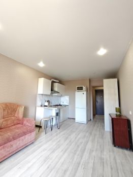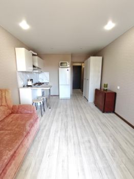 Сдаётся светлая и уютная студия площадью 28 м² в Михайловке, в жилом комплексе Green Place, на длительный срок. Это компактное, но продуманное пространство с огромной кухней, где можно комфортно готовить, принимать гостей или просто отдыхать после рабочего дня. Отдельным преимуществом является просторная лоджия. В студии есть всё необходимое: микроволновка, два удобных спальных места и современный кухонный гарнитур. Это жильё идеально подойдёт для студентов, семьи с ребёнком.