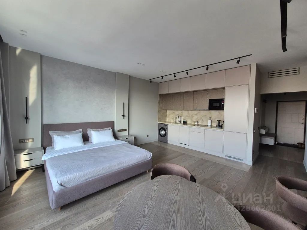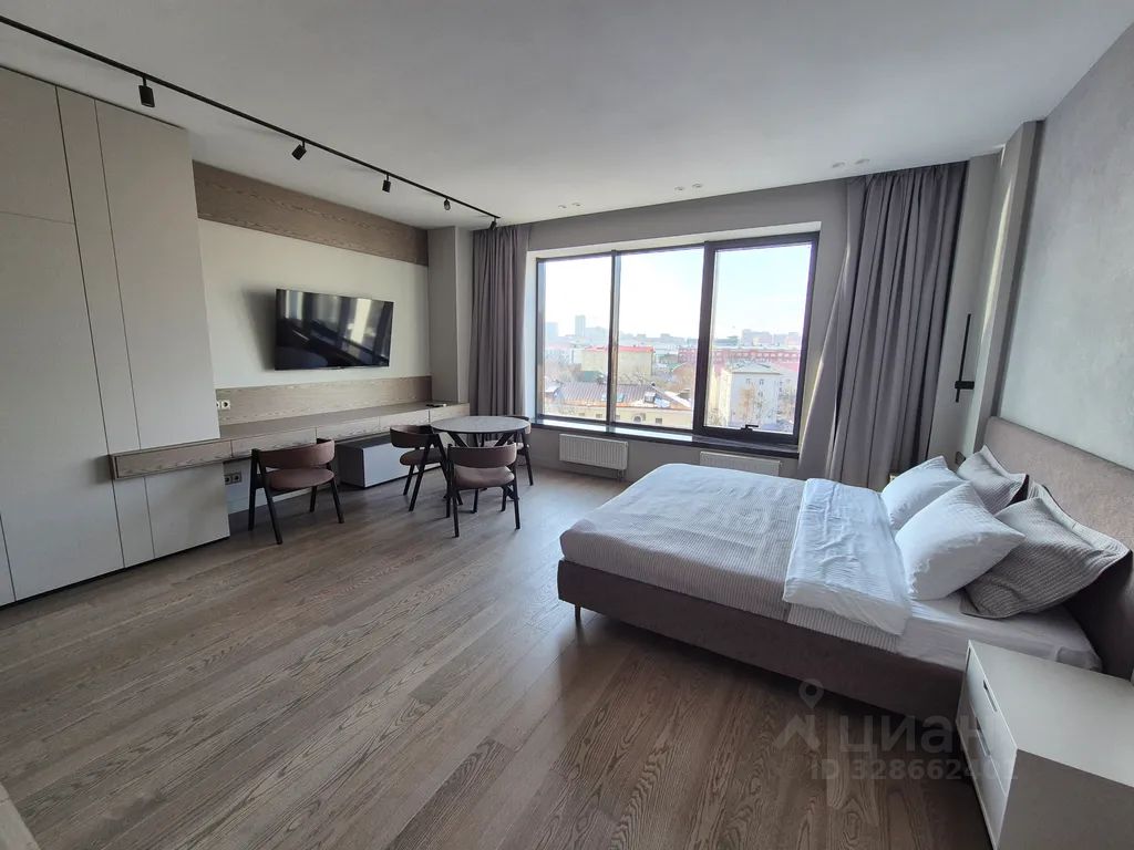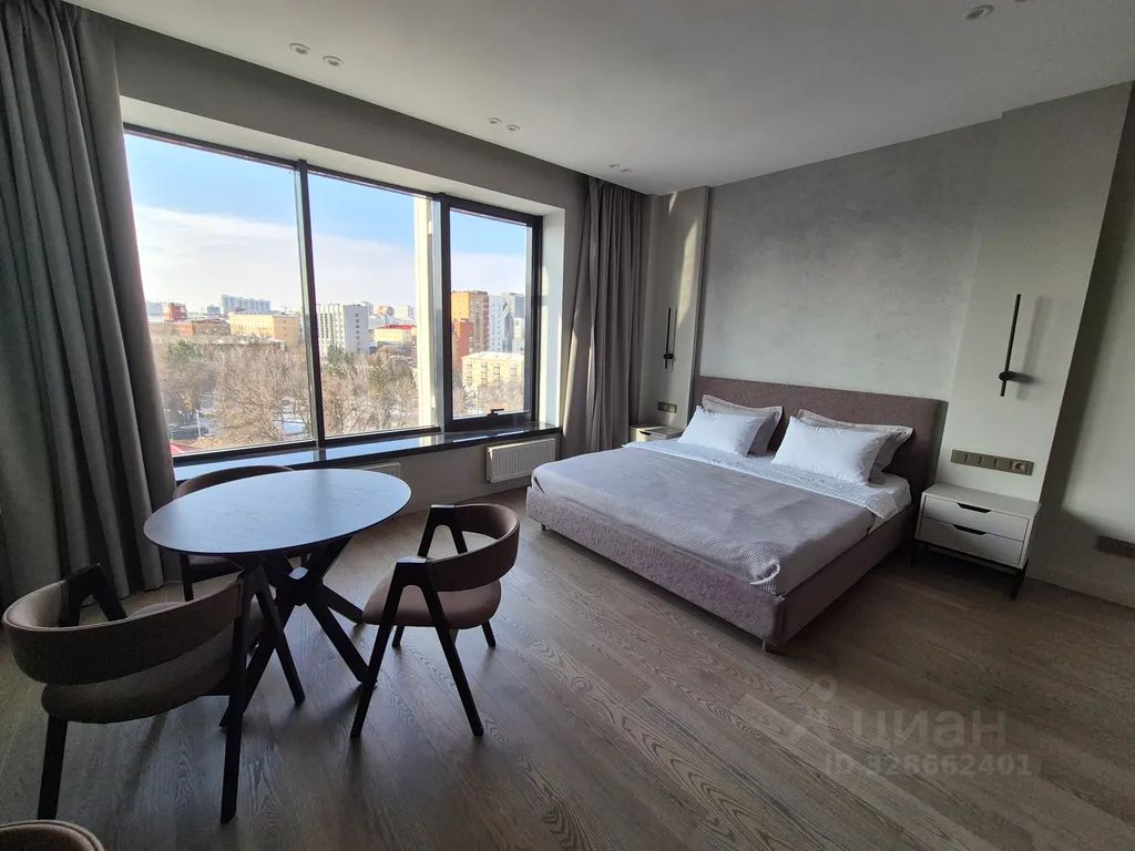 Стильная студия в центре Уфы в клубном доме "Соты" с красивым видом на центр города и бесплатным подземным паркингом.