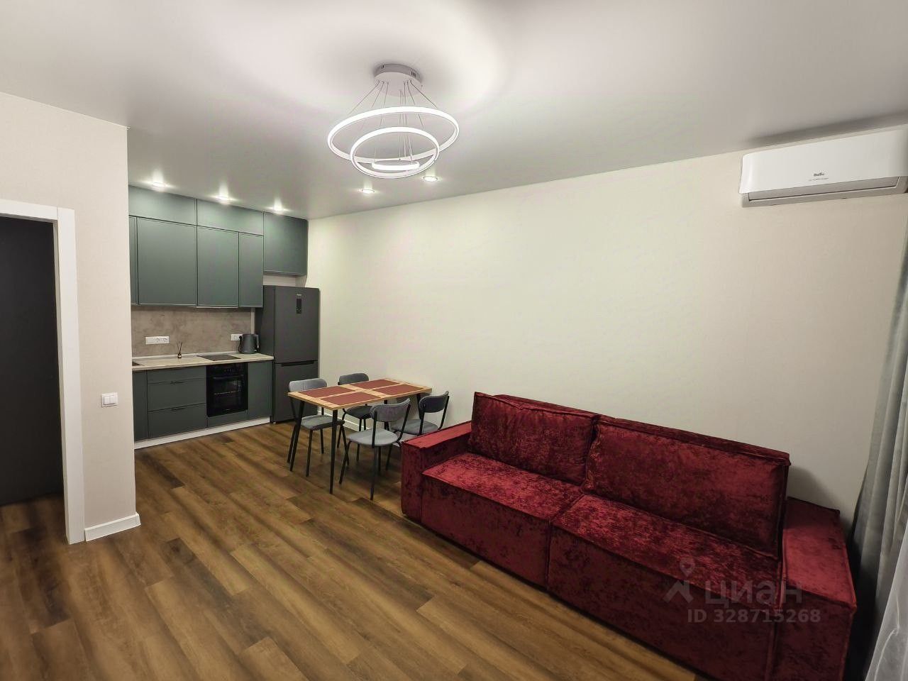 Просторная гостиная с кухней. В квартире изолированные комнаты, что обеспечивает комфорт и приватность.
