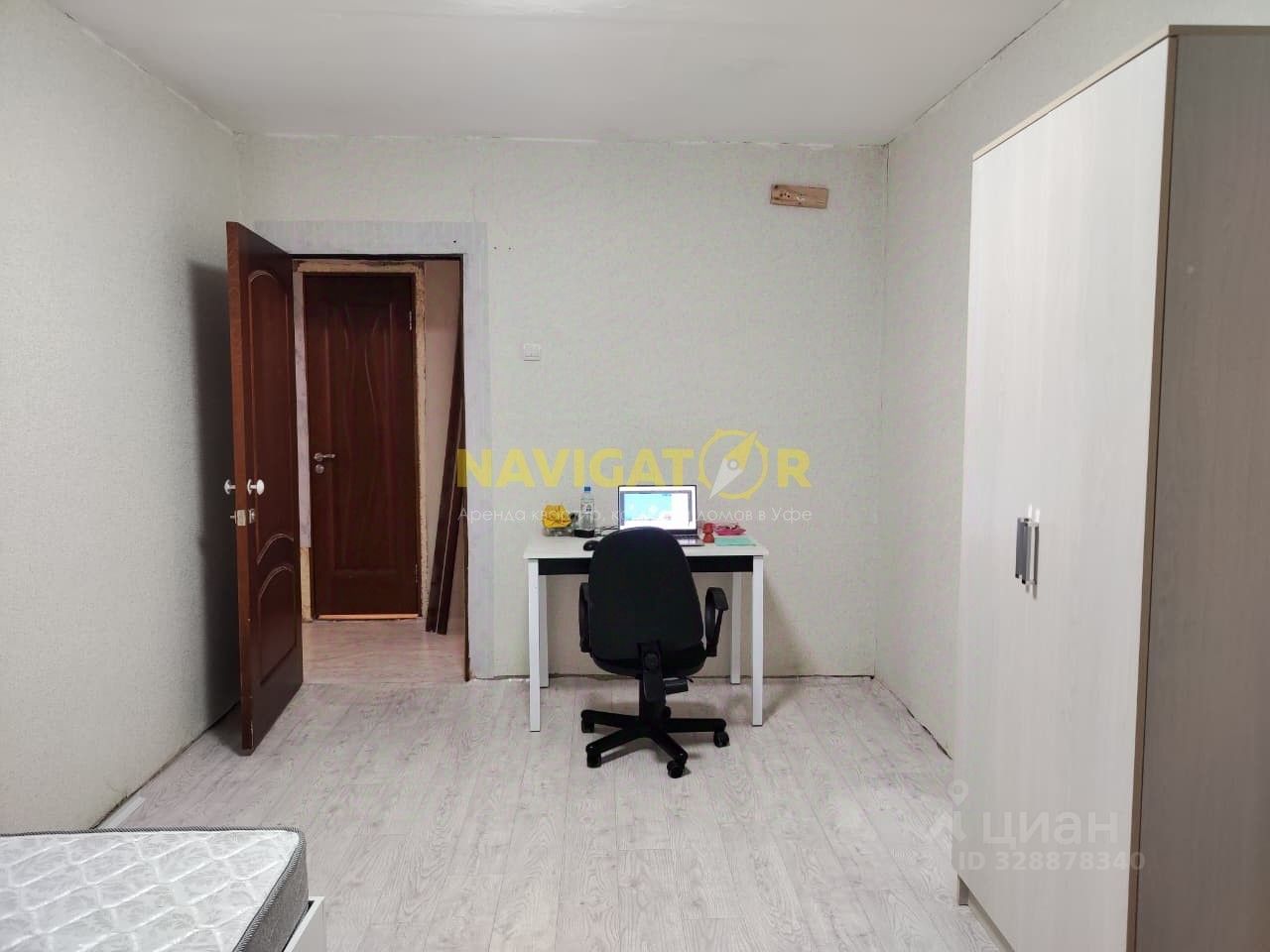 В комнатах стоят односпальные новые кровати с комфортными матрасом, шкаф для одежды, и рабочий стол.